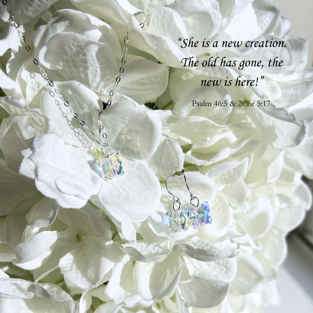 Celebrate who you are - This set is your personal testimony of grace, growth and renewal! Inspired by the powerful messages of Psalm 46:5 and 2Corinthians 5:17, this Swarovski crystal butterfly set is a wearable reminder of your strength and transformed new life. "The old has passed away; behold, the new has come!"