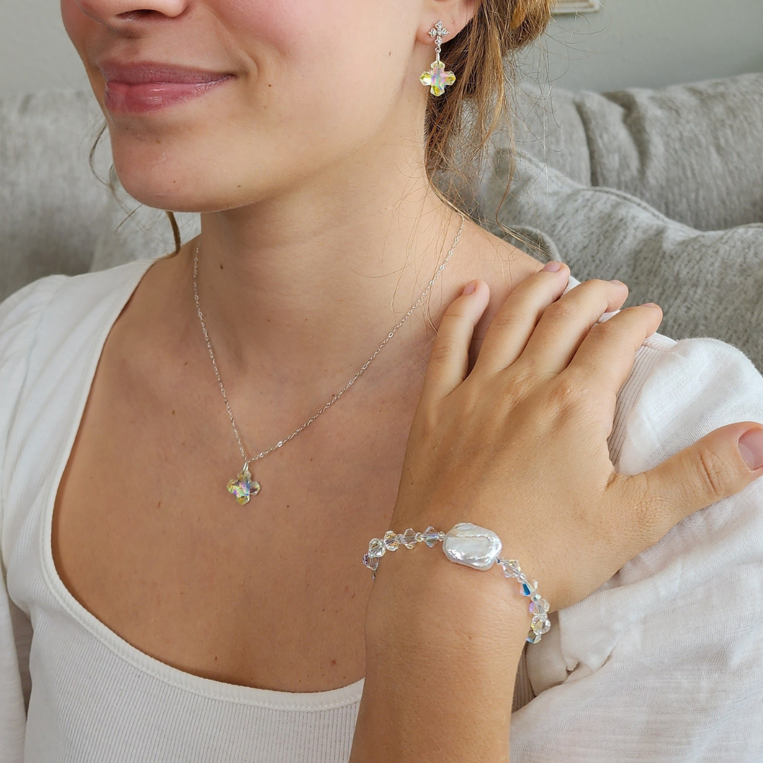 Genuine Swarovski Crystal & Natural Baroque Keshi Pearl