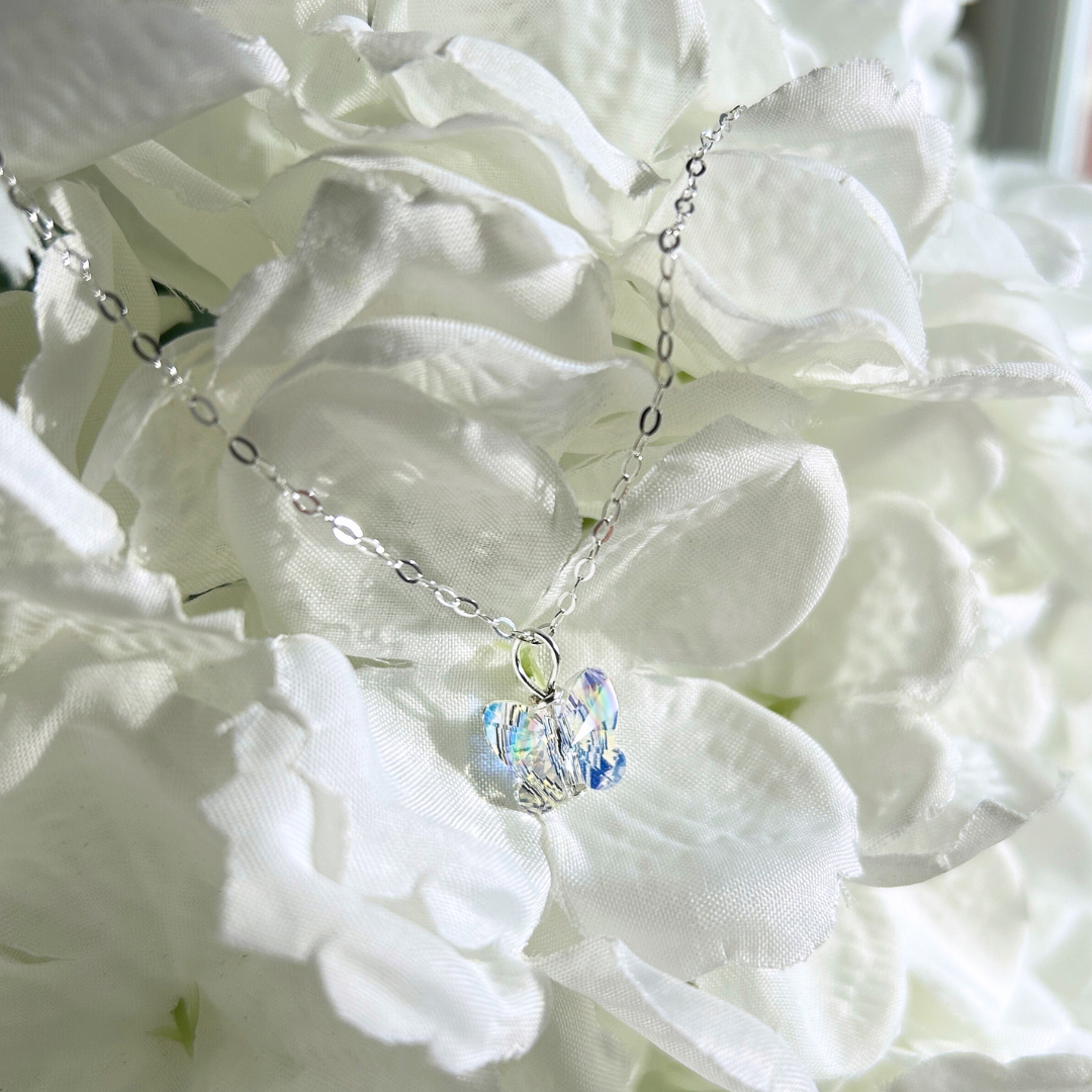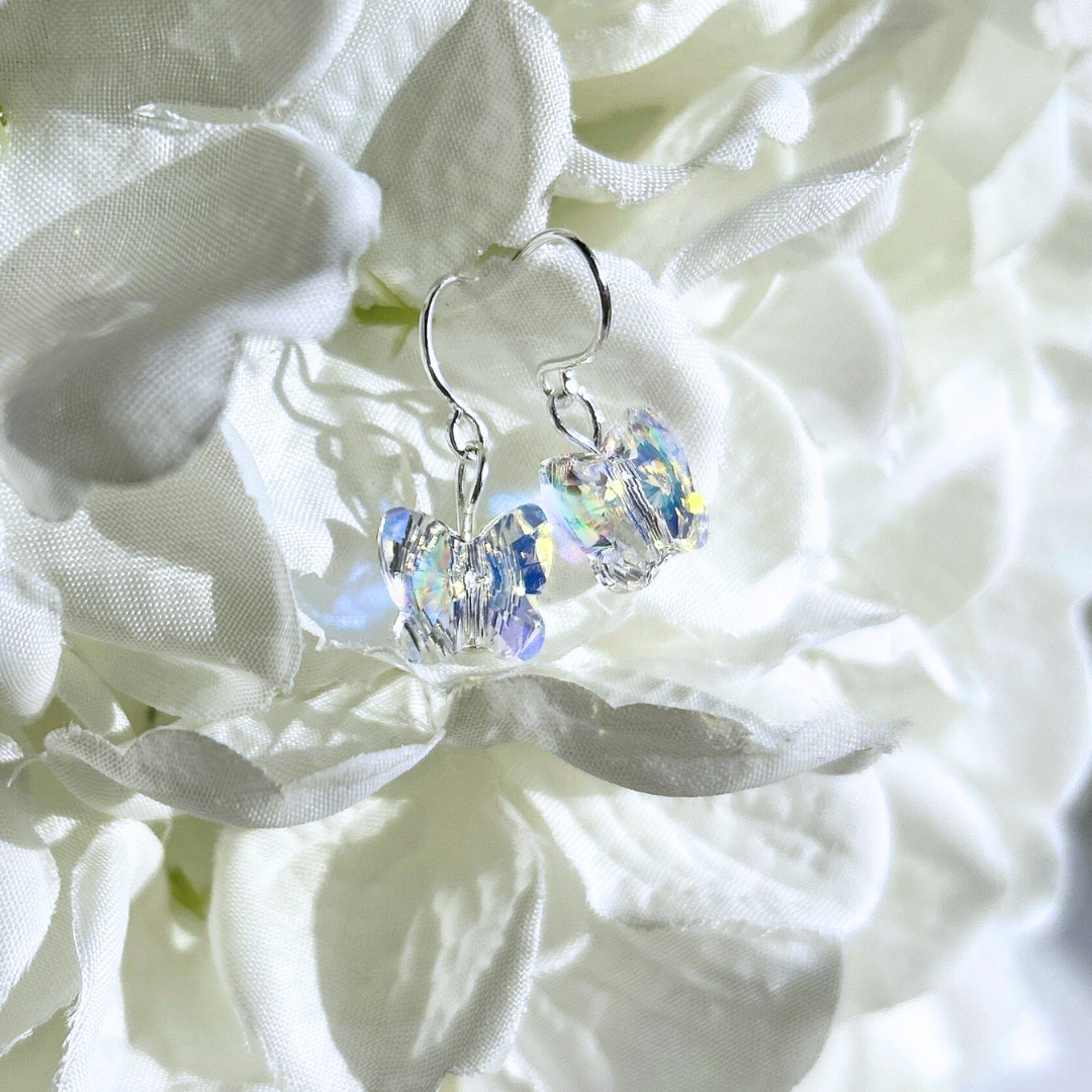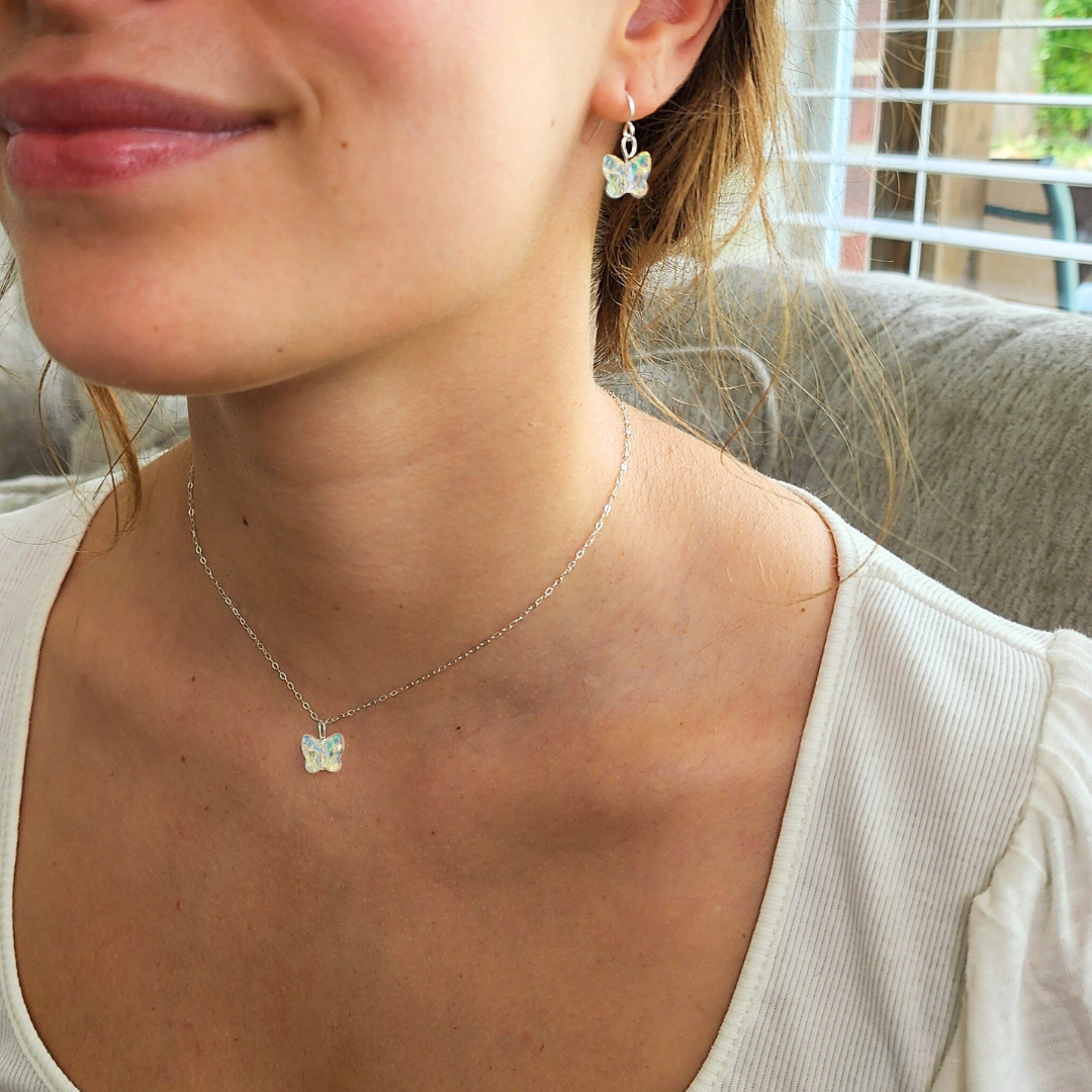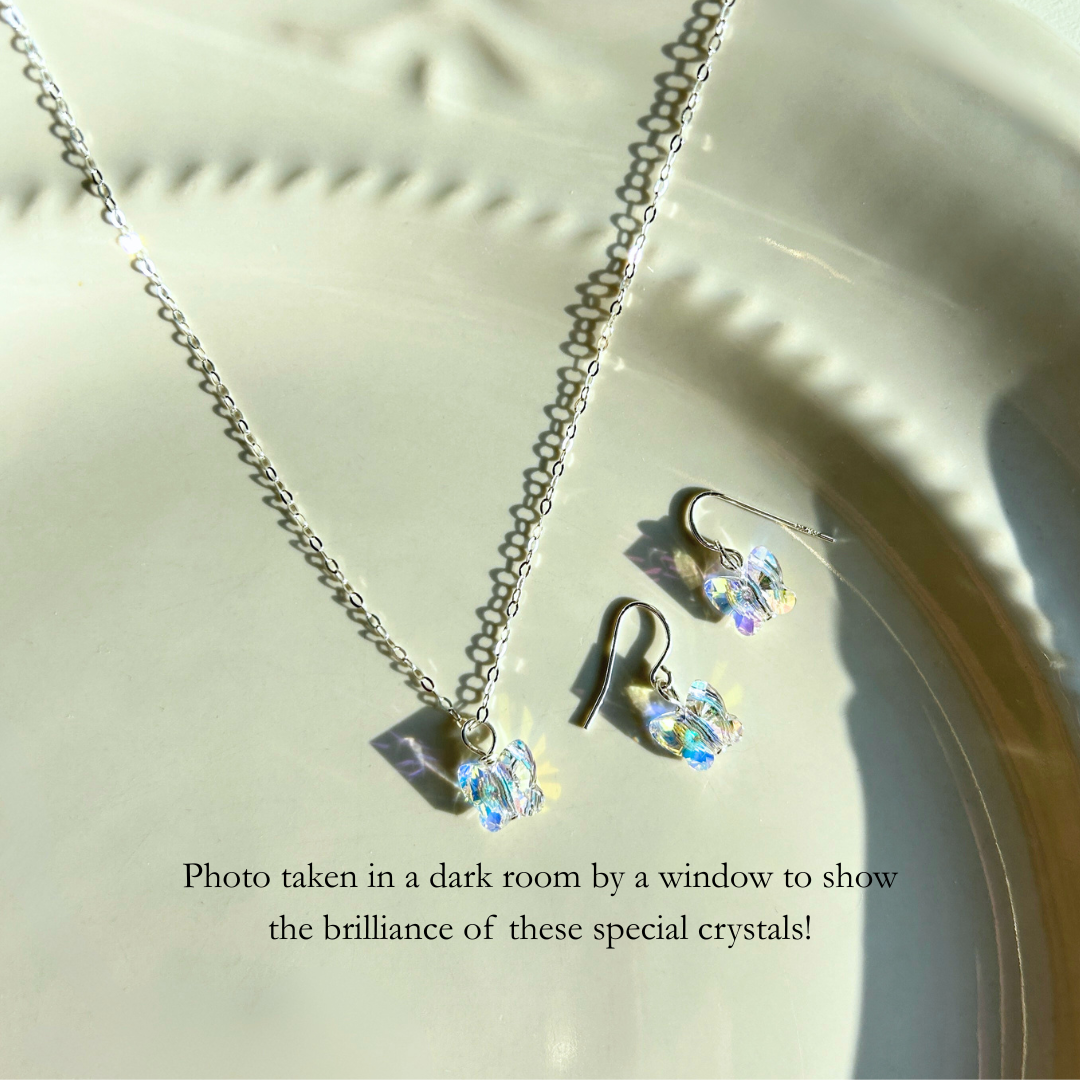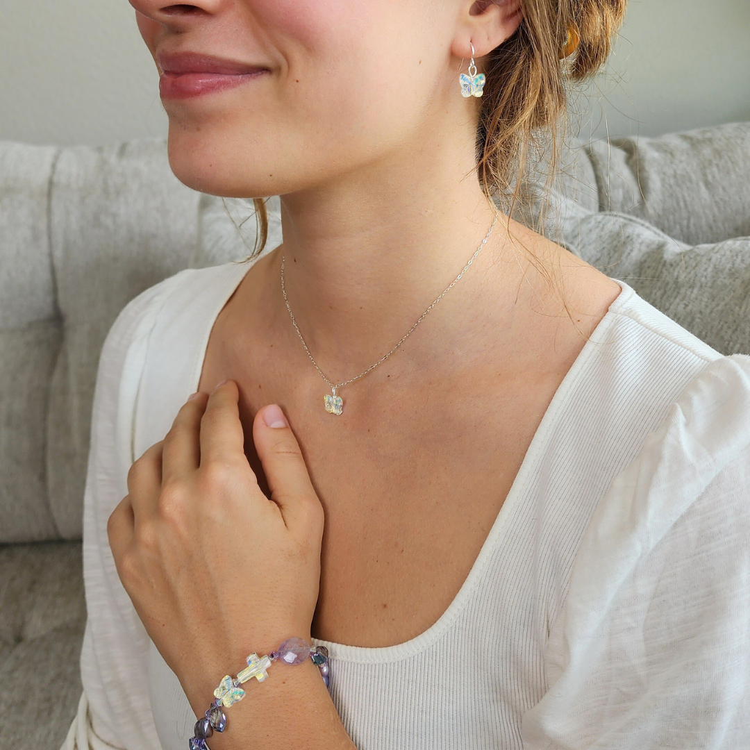 Authentic Aurora Borealis Swarovski Crystal butterflies shimmer on 925 Sterling Silver. A perfect gift of self-love or for a loved one navigating a difficult time or celebrating a personal victory. It's a way of saying "I see your strength, and I am here for you."
