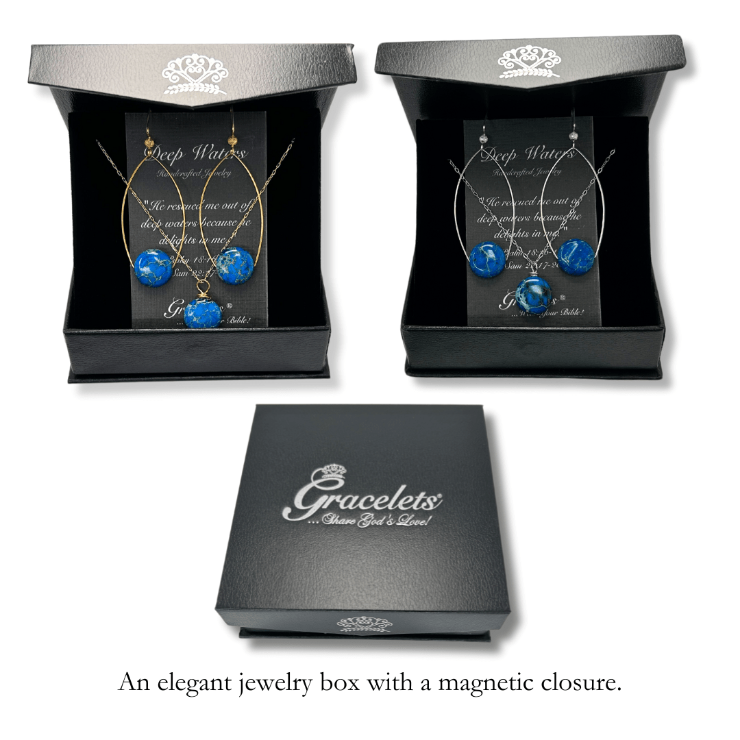 Your Deep Waters Set will be prayed over specifically for you and will arrive in an elegant gift box with a scripture card and a prayer card.