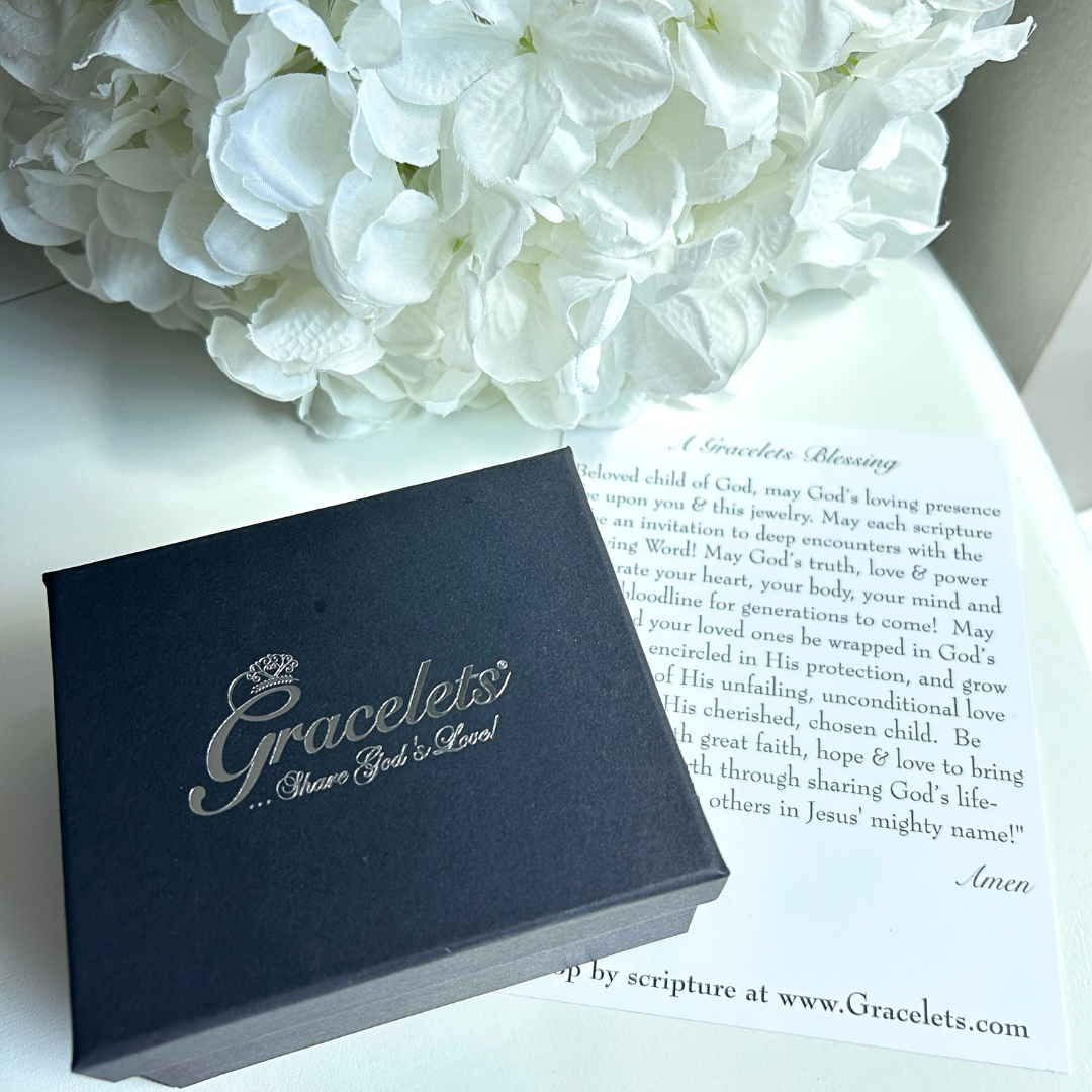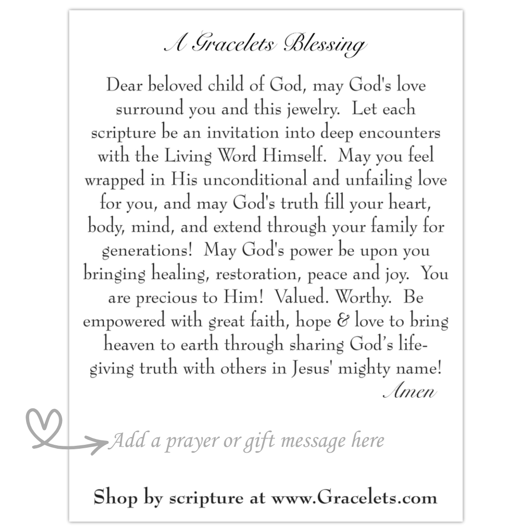 Each Pure of Heart Bracelet comes elegantly gift-boxed with a wallet-sized story card listing the verses each bead symbolizes, and a prayer card. Your bracelet will be prayed over specifically for you.